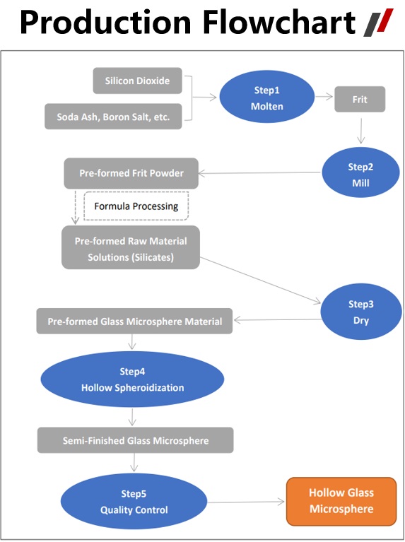 روش ذوب جامد، روش ذوب جامد، که به عنوان روش فاز جامد یا روش پودر شیشه نیز شناخته میشود، از سیلیس (ماسه کوارتز) به عنوان ماده اولیه استفاده میکند و مواد کمکی مانند کربنات سدیم، کربنات کلسیم و بورات را اضافه میکند. شیشه در دمای بالا در کوره ذوب میشود، سپس به صورت پودر آسیاب شده و در دمای بالا به صورت کرههای توخالی در میآید.